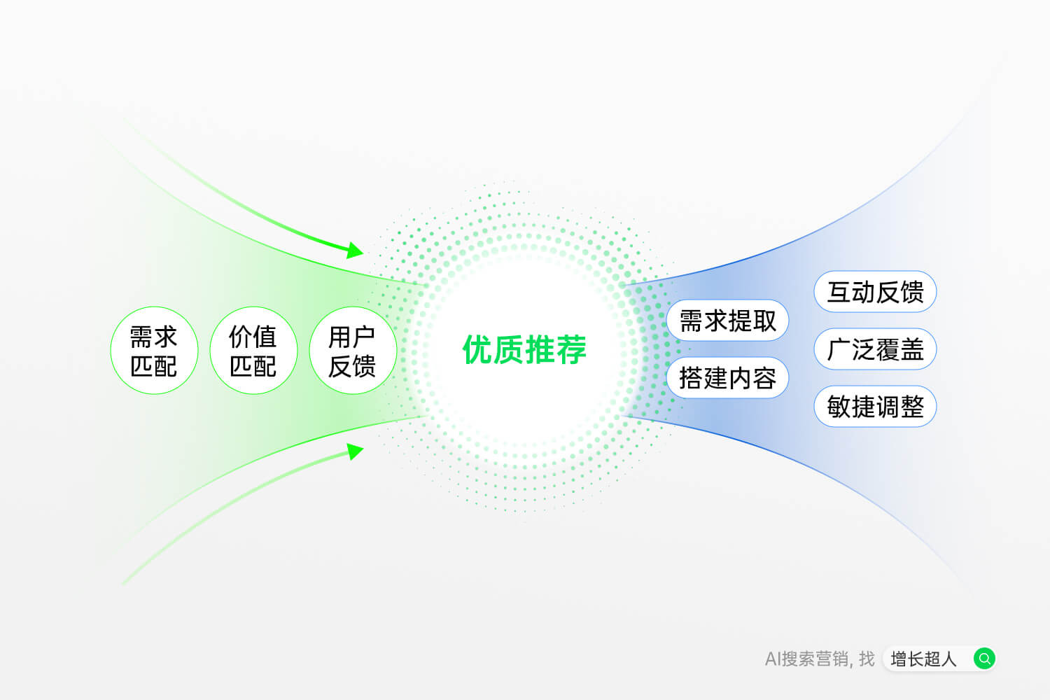 AI 判斷 “優(yōu)質(zhì)推薦” 的核心邏輯錨在 “需求匹配、價值匹配、用戶反饋” 這三點(diǎn)上 —— 它要的不是我們自說自話的 “好內(nèi)容”,而是能精準(zhǔn)對接用戶痛點(diǎn)、提供實(shí)際價值、還能被用戶行為驗(yàn)證的 “有用內(nèi)容”?;谶@三點(diǎn),我們將其歸因拆解,結(jié)合上我們長久積累的營銷經(jīng)驗(yàn),梳理成可落地的五步動作: