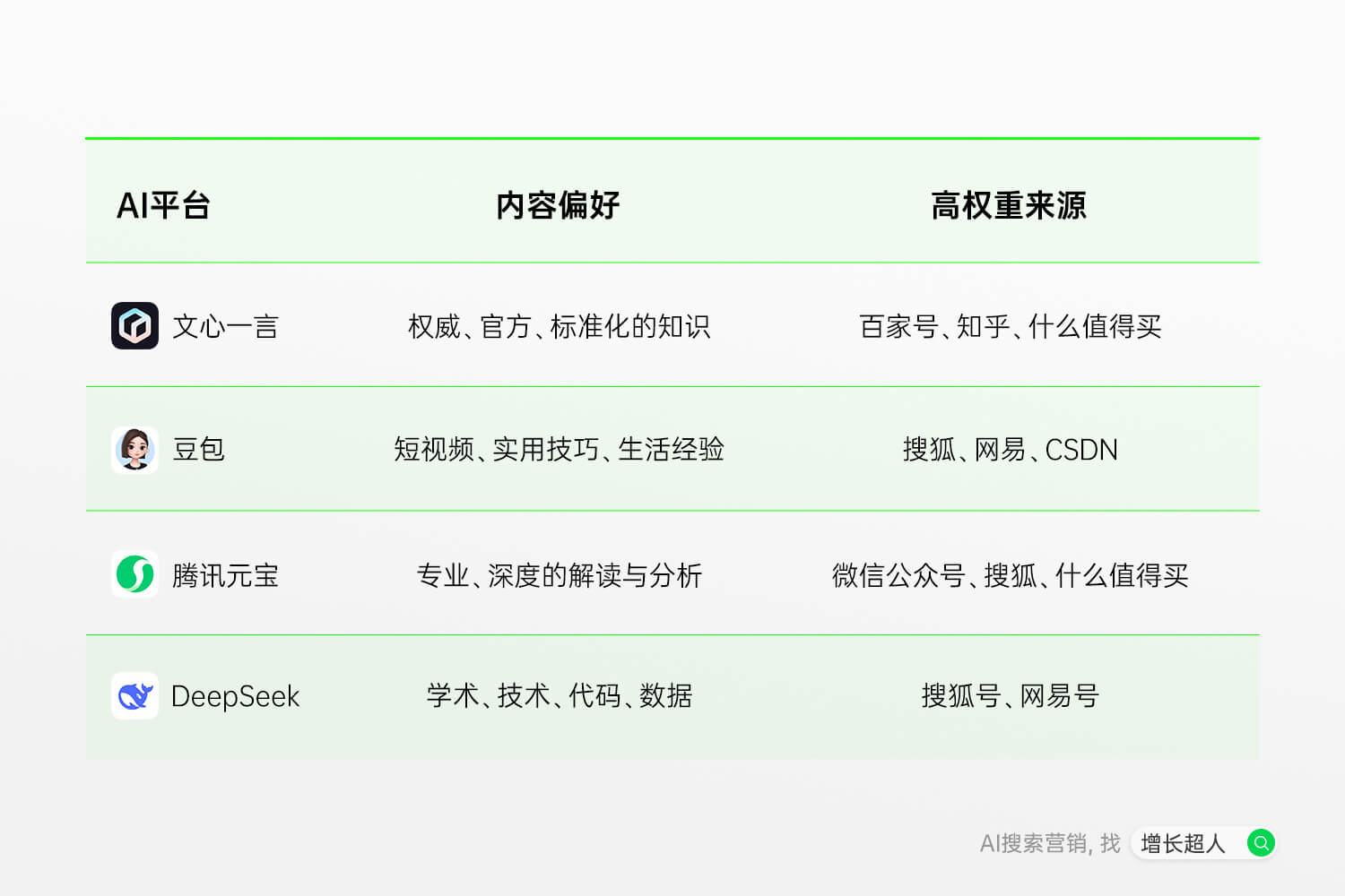 舉個例子,我們之前服務(wù)的一家教育機(jī)構(gòu),我們首先為其錨定 “高性價比教育培訓(xùn)” 這一差異化核心價值,然后將他們的優(yōu)勢、特點(diǎn)拆解,做成模塊化的內(nèi)容庫,并根據(jù)不同AI平臺的收錄與內(nèi)容偏好,進(jìn)行定制輸出。例如:豆包偏好頭條系平臺;百度偏好百度系和搜狐,內(nèi)容在符合用戶需求的前提下,強(qiáng)調(diào)行業(yè)成就等。運(yùn)營沒多久,效果便清晰顯現(xiàn):他們在教育培訓(xùn)相關(guān)業(yè)務(wù)的所有的AI 搜索平臺推薦中,均躋身 TOP3 ,與行業(yè)頭部企業(yè)同臺競技。